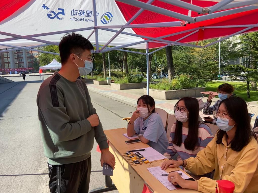 省外新生抵达报到地点后,在学生会成员指导下依次进行扫脸报到、测量体温、上交准考证和录取通知书、领取校园一卡通和宿舍钥匙及用品、办理校园网等报到流程。