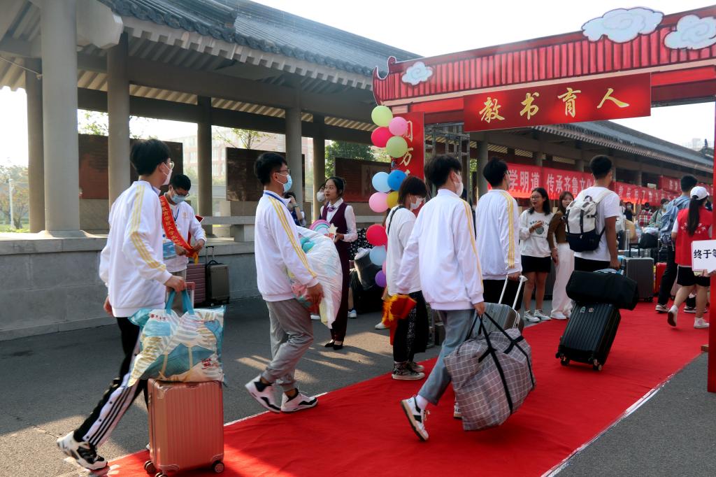 新生踏入齐师的校门,在教师教育学院的新生签名墙留下自己的名字;拍下在师院的第一张照片;穿过拱门、踏上红毯, 每位新生在学长学姐的耐心带领下,完成报到流程,正式开启教院之旅。