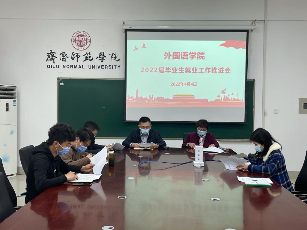 4月4日晚,外国语学院召开2022届毕业生就业工作推进会,传达学校相关工作会议精神,并就学院下一步就业工作进行部署。会议由外国语学院党委书记于江主持,学院全体行政管理人员参加会议。