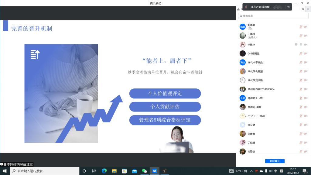 人事部经理李婷婷从企业介绍、企业文化、品牌产品、智能制造、人才战略、招聘岗位等方面向2022届毕业生介绍了公司的基本情况,详细讲解了该公司完善的晋升机制——能者上,庸者下。在互动环节,李婷婷针对应届毕业生们提出的问题做出了详细解答。