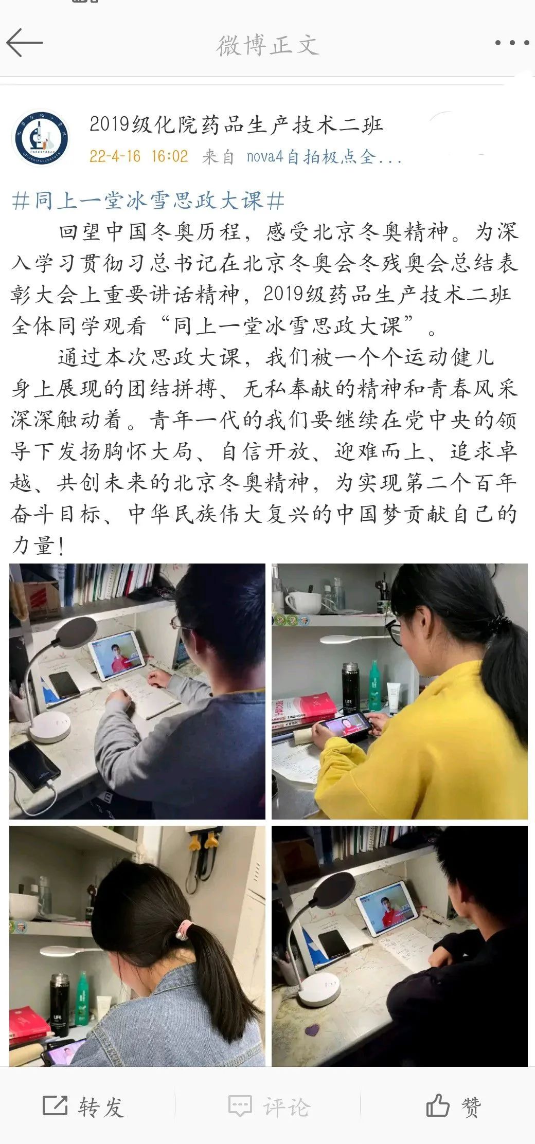 化学与化工学院各团支部开展“同上‘冰雪’思政大课,弘扬北京冬奥精神”主题政治学习