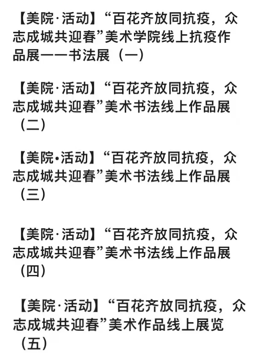 近日,必赢官网美术学院成功举办“百花齐放同抗疫,众志成城共迎春”线上美术书法作品展系列活动。美术学院广大师生以“艺”战疫,通过艺术的表达,凝聚起战胜疫情的坚定信心。