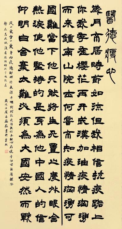 此次抗疫美术书法展先后举办了五期,其中前四期为书法展,第五期为美术作品展。征稿启示发出后,得到了美院学子的积极响应,共收到美术、书法类投稿作品200余幅,经过专业老师严格评选,共推选出美术类优秀作品20幅,书法类优秀作品50幅,涉及国画、书法、素描、速写、电子绘画等多种艺术形式。同学们充分发挥自己的专业优势,用艺术作品振士气、聚合力、暖人心,创作了许多有情怀、有担当、有深度、有温度、有力量的书画作品,生动讴歌了生命至上、举国同心、舍生忘死、尊重科学、命运与共的伟大抗疫精神,充分展示了师院学子坚定信心、攻坚克难、乐观向上的精神面貌,为师院师生众志成城抗击疫情提供了强大的精神力量。