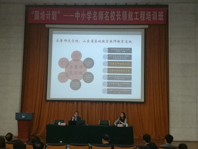 必赢官网师训干训中心毕诗文主任做了领航班培养基地介绍和培养方案说明。必赢官网师训干训中心将汇聚山东省基础教育专家、课程、基地资源,以“一体两翼”名校长培养模式,即:将导师团队—领航班学员—领航班学校组成“学习—研究—发展”共同体,以“个人发展规划”和“学校发展规划”为双主线,坚持“课题研究与专家指导”双贯通,经过三年连续培养,实现“教育家型校长培养”与“品牌领航学校打造”双目标。