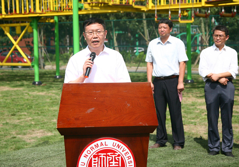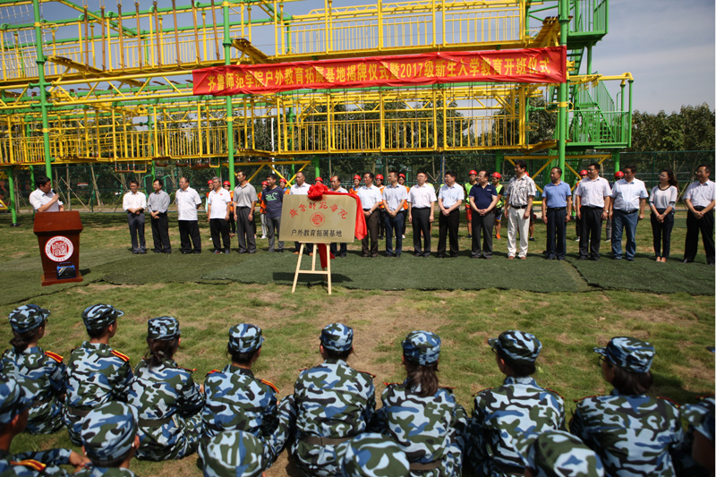 揭牌仪式首先由许弘致辞,他指出户外素质教育拓展训练能增进大学生健康,锻炼意志,培养学生在困境中的生存能力,又能有效地在体能、毅力、智慧、沟通、协作等方面提高学生的综合素质,培养具有克服困难的毅力和积极进取的人生态度,培养善于合作的团队意识和热情服务社会的精神。