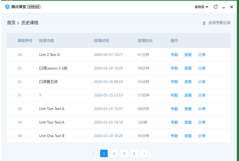 可以回看自己的整个课堂。之前线下教学时上过课就上过了,从来没想到过要复盘,而通过腾讯课堂的回放功能,我复盘了自己的课堂,才发现自己的课程问题多多,比如语速过快、说话没有逻辑、太多口头禅等。通过回看,我也总结了自己的问题,下次上课的时候就有意识地避免这些问题。此外,该功能也方便教师查看学生详细的出勤情况,包括每位学生在线的时间。