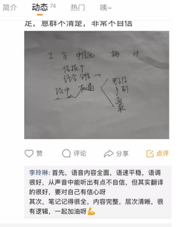 使用微信小打卡布置作业,大大减轻了老师的负担,学生打卡之后,老师就可以利用碎片化时间,进入打卡圈子,查看学生作业完成情况,并在下面给出评价。