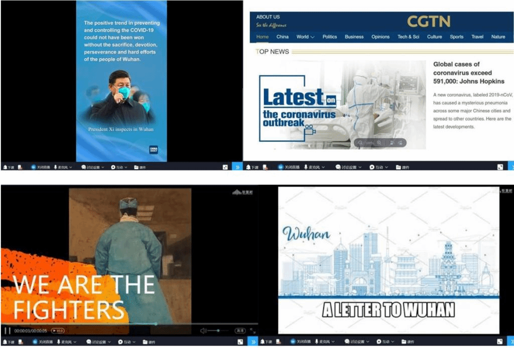 疫情期间,居家的学生们会接收到各种有关疫情的信息,这些信息鱼龙混杂,甚至不乏谣言,大大增加了学生们的焦虑情绪。大学英语线上课堂选择了讲解疫情相关词汇,播放钟南山对新冠肺炎的英语访谈,力求从科普的角度说明病毒的传播途径及防护方式,帮助学生远离不准确的“infodemic”(信息流行病),减少恐慌,保持积极乐观,做好自我防护工作,做到科学防疫。