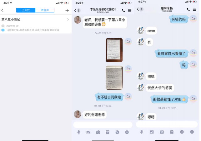 4. 课后答疑环节:课后问问题的同学比较多,线上答疑一般采用打字解释、语音讲解和短视频讲解的方式,目前学生对这段时间线上学习效果普遍满意。