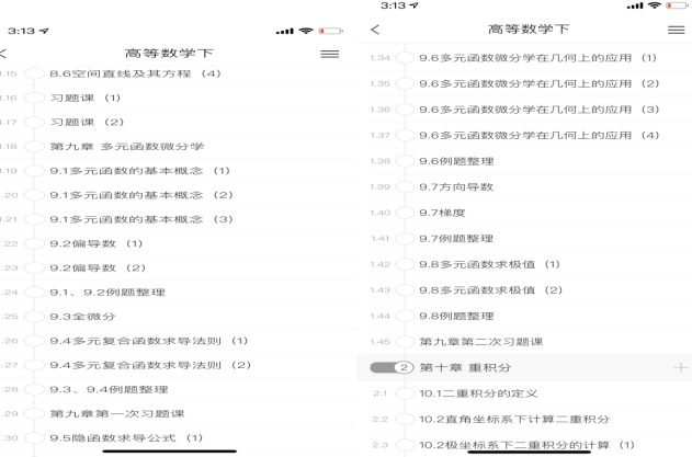 (1)章节:在“章节”中,我放置了每节课的录课视屏,每节课程都是自己使用录屏软件录制。录课视频主要作为学生预习和复习资源,且为了避免和直播课内容重复尤其是例题的重复,录课视频和直播课采用了不同的课件。除了录课视频,“章节”内容中还包含了每节课的例题整理和每章习题课习题整理,作为学生课后复习的参考内容。