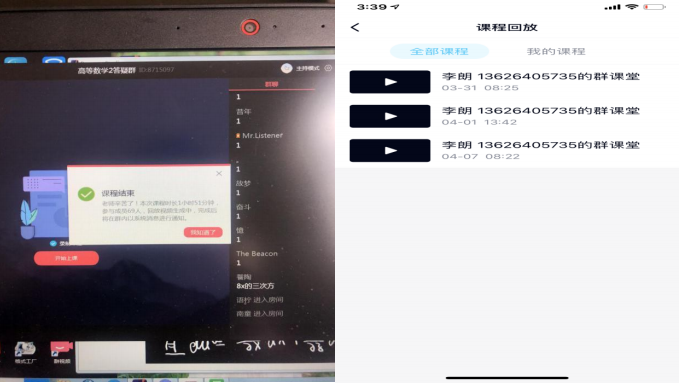 经过两周的调试,最终选择使用 QQ 课堂直播形式上课,QQ 课堂使用顺畅、基本无卡顿现象,交流界面简单清晰,学生普遍反映容易接受 QQ 课堂。且 QQ 课堂新增了课程录制, 在开启课堂时点击“课程录制”即可在课程结束后自动生成录课视频,可以供学生课后整理笔记和复习观看,这个功能非常受学生们的欢迎。