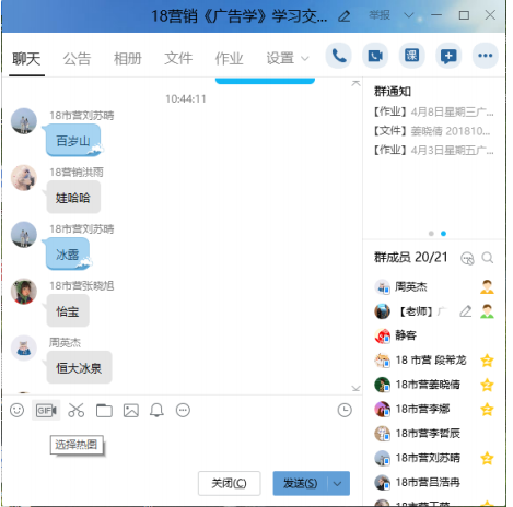 线上教学开始之前,跟学生进行了沟通,学生反映更喜欢直播教学,学习主动性跟兴趣更高,而且该班级学生人数仅有19人,直播教学容易管理,能够保证大部分学生的课堂互动交流与指导。平台选择上,考虑学生对于QQ非常熟悉,也是一直在使用的交流工具,加上腾讯为了迎合疫情期间线上教学增加了很多功能:群课堂、课程回放、学习打卡、作业等功能,能够满足教学需求,所以选择了QQ群作为主要的教学工具,直播方式采用屏幕共享+语音直播讲解课程。