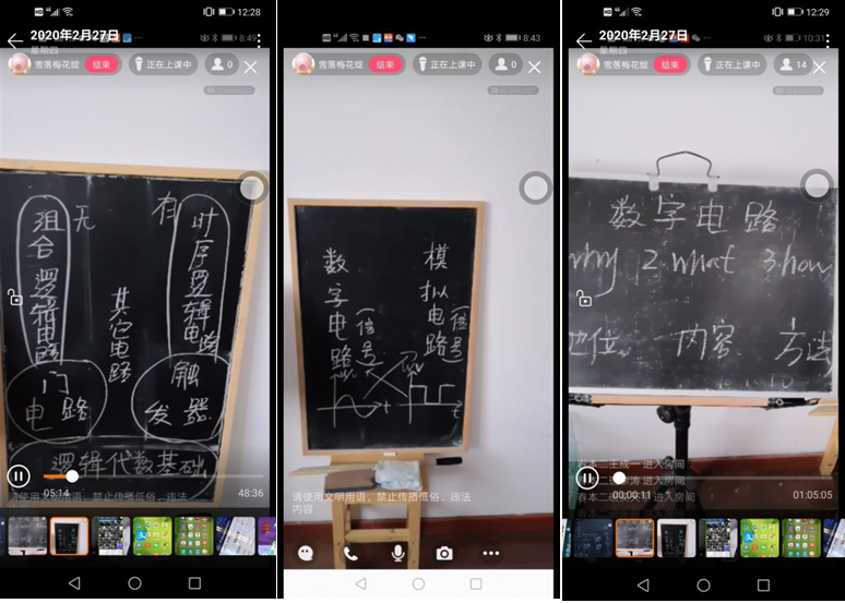 课程所依平台只是一个工具,最终目的是如何做好教学,因此没有过多纠结平台,快速选定了智慧树。在众多教学资源中,果断选取了一个年轻、有朝气、有独特讲课风格的80后男老师的课程作为教学资源,最终因不能完全按照自己思路而只将它作为学生们课后参考。每节课前,自己录制视频,采用EV录屏,很方便,在智慧树中将录制的音频上传,上课时可方便直播。腾讯会议也非常方便快捷,在课程之初曾采用,方便同学们看到久违的黑板,唤起学习热情,黑板上书写方便,缺点是在讲课和书写的过程中太投入,同学们在腾讯会议中的问答互动,我浏览和回应起来不够及时方便,因此后面上课不再采用板书加腾讯会议。