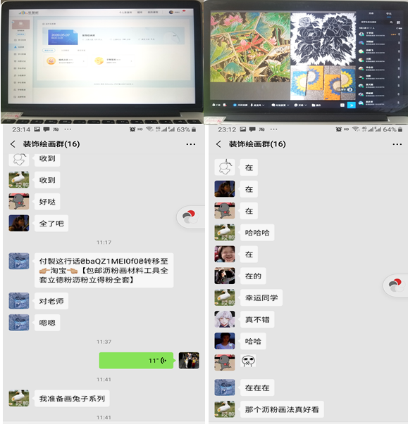 3.选择教学平台。在网课初始,学校已经组织教师们进行多种网络教学平台的培训学习,经过考量比较,结合《装饰绘画》课程的性质与特点,我最终选定智慧树网络平台,并用微信作为教学工具辅助,提前建立好微信群。