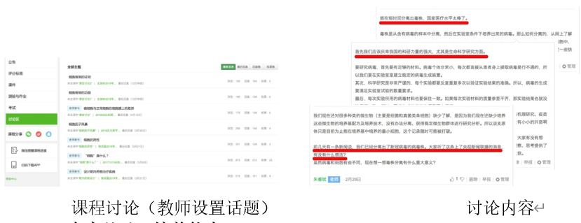 在掌握基础知识的基础上,引导学生对对课堂讨论话题进行独立思考、讨论和总结。课堂讨论话题包括引起新冠肺炎重症化的“细胞因子风暴”、在新冠肺炎药物开发过程中如何设计高效的“靶向药物”及如何避免“抗药性”的产生等结合社会热点问题。在其他话题的讨论中也会诱导学生关注身边发生的事情,培养学生的爱国主义情怀。例如,在讨论“细胞和病毒的不同”这一话题时关注“我国率先获得新冠病毒株培养成功”的消息,引导学生对我国科研和医疗力量的认可,增强学生的民族自豪感。
