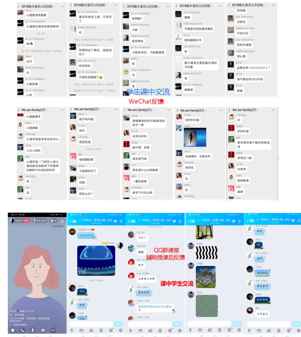 利用智慧树在线学习平台,建立翻转课堂,以见面课为主,QQ群课堂为辅。正式开课前将本课程学习资源、作业上传,并按周次发布,以供学生在线学习。除此之外,考虑到2018级体育舞蹈专业的学生都是文科生,生物基础较薄弱,而生理又是心理学的基础,故利用QQ、微信的方式发放相关学习资源。由于在线教学无法与学生直面交流,我便通过QQ、微信与学生进行交流,询问他们有没有听懂、哪些地方存在疑惑。把他们的问题记录下来,对于普遍性的问题,通过QQ群课堂或会议的方式进行解决;对于个人的问题,通过语音聊天等方式进行一对一解决。