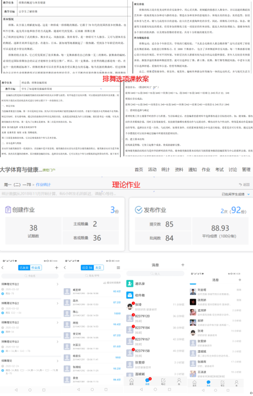 根据学校对于大学体育与健康网络课程开设的要求,用“超星”建立网络课程开设班级,发布学习资源、布置学习任务,并建立QQ班级群、开启群课堂等与学生进行互动。