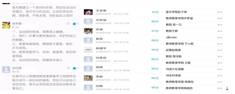 此次在线教学,在开课之前20分钟借助QQ群平台提醒学生进入学生通签到,再让学生观看课程的介绍、教学视频期间会不定时的检查,将上课所学内容拍照或视频上传。开学到现在上课效率有明显的提升。
