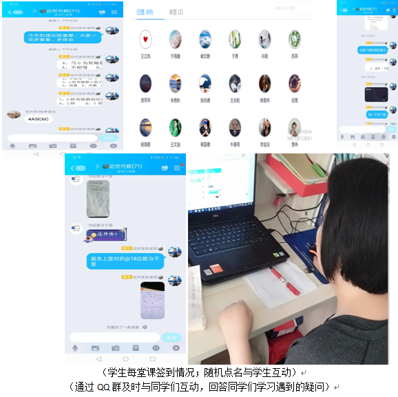 这学期所教授的是2018级数学班和2019级专升本班的《近世代数基础》这门课,共有学生70人。为了让学生对知识点更好的理解和掌握,每节课课前布置学习任务,上传提前录好的视频,等学生看完上传的视频后,我安排了30分钟左右的答疑时间,答疑借助的是QQ群,这个平台的优点是每位同学都可以打开麦克随意发言,这样的模式很适合讨论学习,方便师生在线交流。在答疑的过程中让学生提出有疑惑的问题,先让其他同学来回答,然后针对同学们的答案我再补充说明,并同时针对在学习过程中用到的知识点进行梳理,先重点巩固在新知识讲授过程中用到的已学过的结论,然后就相关的主要定理,题型进行总结。这种答疑模式部分弥补了在线教学无法与学生及时互动,无法掌握学生学习情况的不足。