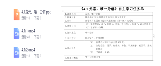 1.课前预习。通过QQ群和智慧树翻转课堂给学生上传了《近世代数基础》电子教案,同课下我做好的PPT及录好的视频,让同学可以提前预习课堂内容。