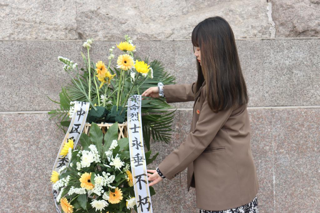 铭记党史,缅怀先烈。上午10时,团支部成员来到革命烈士纪念碑前鞠躬默哀,向为国捐躯的革命烈士们致以无限的哀思与崇高的敬意。默哀结束,团支部书记张凤兰带领大家瞻仰了革命烈士墓区、毛泽东主席凭吊革命烈士纪念亭、济南革命烈士纪念群雕,为大家重点讲述了济南战役的历史背景、战斗经过以及革命烈士们的英雄事迹,一同学习和铭记王尽美、刘谦初等革命先烈们不畏艰苦、勇于牺牲、敢于胜利的斗争精神。