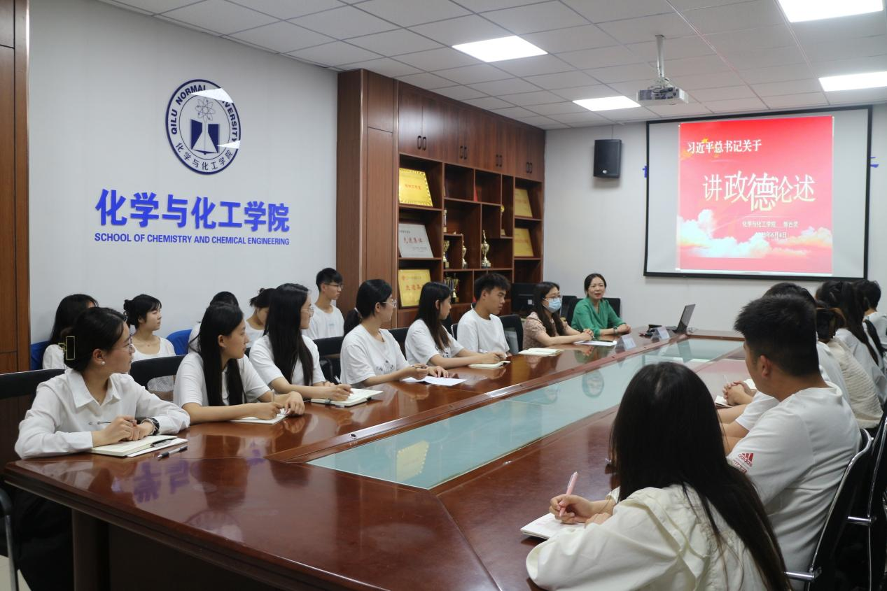 为深入开展学习贯彻习近平新时代中国特色社会主义思想主题教育,贯彻落实习近平总书记关于青年工作的重要思想,深化党建带团建工作机制,6月4日晚,化学与化工学院党委书记郭百灵在学院会议室面向学生干部讲专题党课,学院学生会和自管会的主席团成员、各部门负责人参加学习。活动由团总支书记杨睿主持。