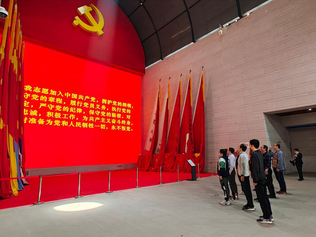 一寸山河一寸血,一抔热土一抔魂。全体党员、入党积极分子先是参观了台儿庄大战纪念馆。他们沿着38级台阶拾级而上,怀着沉重的心情进入纪念馆内,通过一张张历史图片、一件件历史文物、一段段珍贵视频、一篇篇新闻报道,跟随讲解员重温台儿庄大战的全过程,感悟抗日英烈们匹夫有责的家国情怀、宁死不屈的民族气节、血战到底的英雄气概、百折不挠的抗战信念。