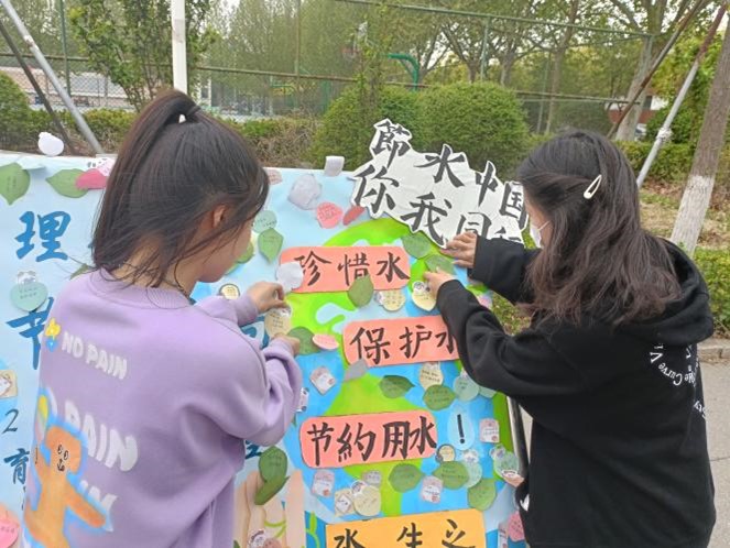4月13日,教师教育学院辅导员马芳兵带领学生党员于校园主干道设置节水宣传栏,张贴“君子之行,静以修身,俭以养德”“克勤于邦,克俭于家”“君子以俭德辟难”等标语,以节水行动践行君子之道。学生党员给过往的师生分发节水宣传资料,详细讲解节水小知识,号召大家在便签上书写节水标语,呼吁节约用水成为自觉行为,大大激发了大家的参与热情。