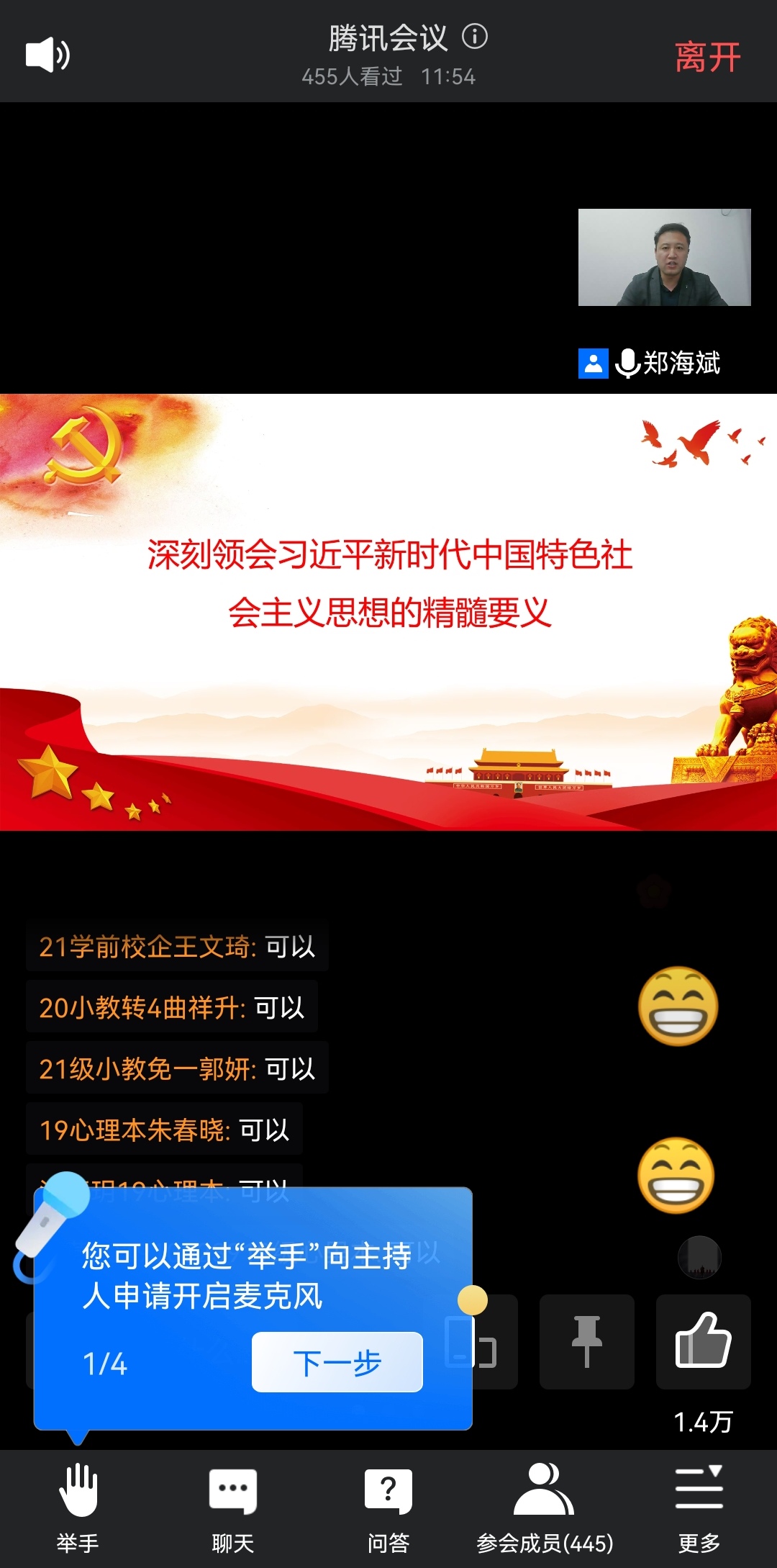 郑海斌为新一期的入党积极分子培训班致辞。他强调了举办入党积极分子培训班的重大意义,激励所有入党积极分子要不断加强政治修养、增强理论积淀,以高标准严格要求自己,发挥模范带头作用,期待所有学员都能够学有所获。
