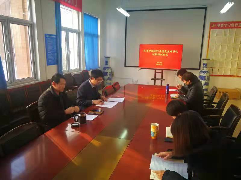 为深入学习贯彻习近平新时代中国特色社会主义思想和党的十九届六中全会精神,按照省委、省委教育工委有关通知要求和学校党委关于做好2021年度党组织书记履行全面从严治党责任和抓基层党建述职评议考核工作的实施方案要求,结合体育学院党总支的实际情况,2022年1月13日上午,体育学院党总支开展党支部书记述职考核工作。体育学院党总支书记胡义忠主持会议,领导班子成员、党员代表、教师代表参会。