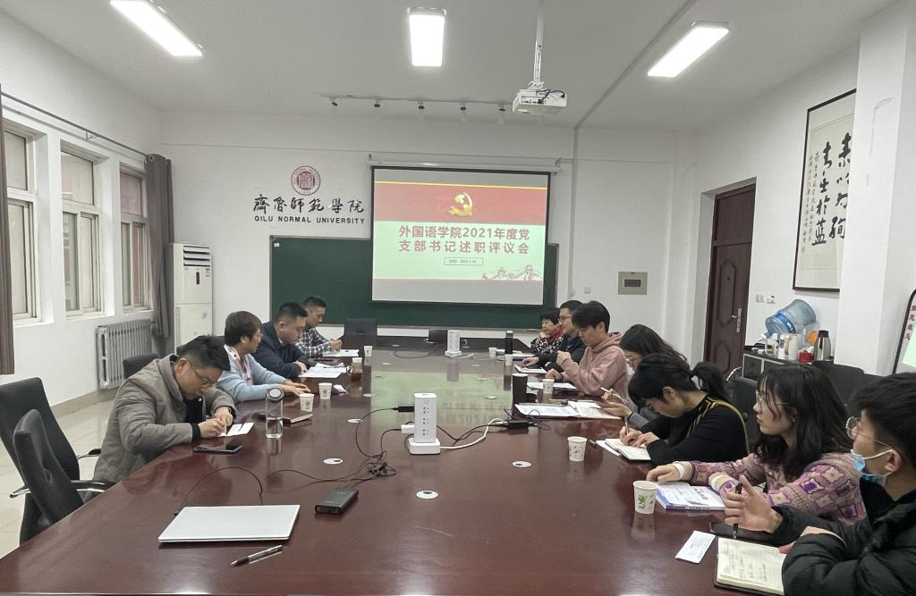 为深入学习贯彻习近平新时代中国特色社会主义思想和党的十九届六中全会精神,进一步压紧压实党支部书记严格落实从严治党、履职尽责做好党支部建设工作责任,外国语学院党总支按照学校党委关于做好2021年度党支部书记履行全面从严治党责任和抓基层党建述职评议考核工作的实施方案的要求,2022年1月10日上午,在学院会议室召开2021年度党支部书记述职评议会。外国语学院党总支书记于江、党总支委员和各支部书记参加会议。会议由党总支书记于江主持,外国语学院院长宋秀葵列席参加。