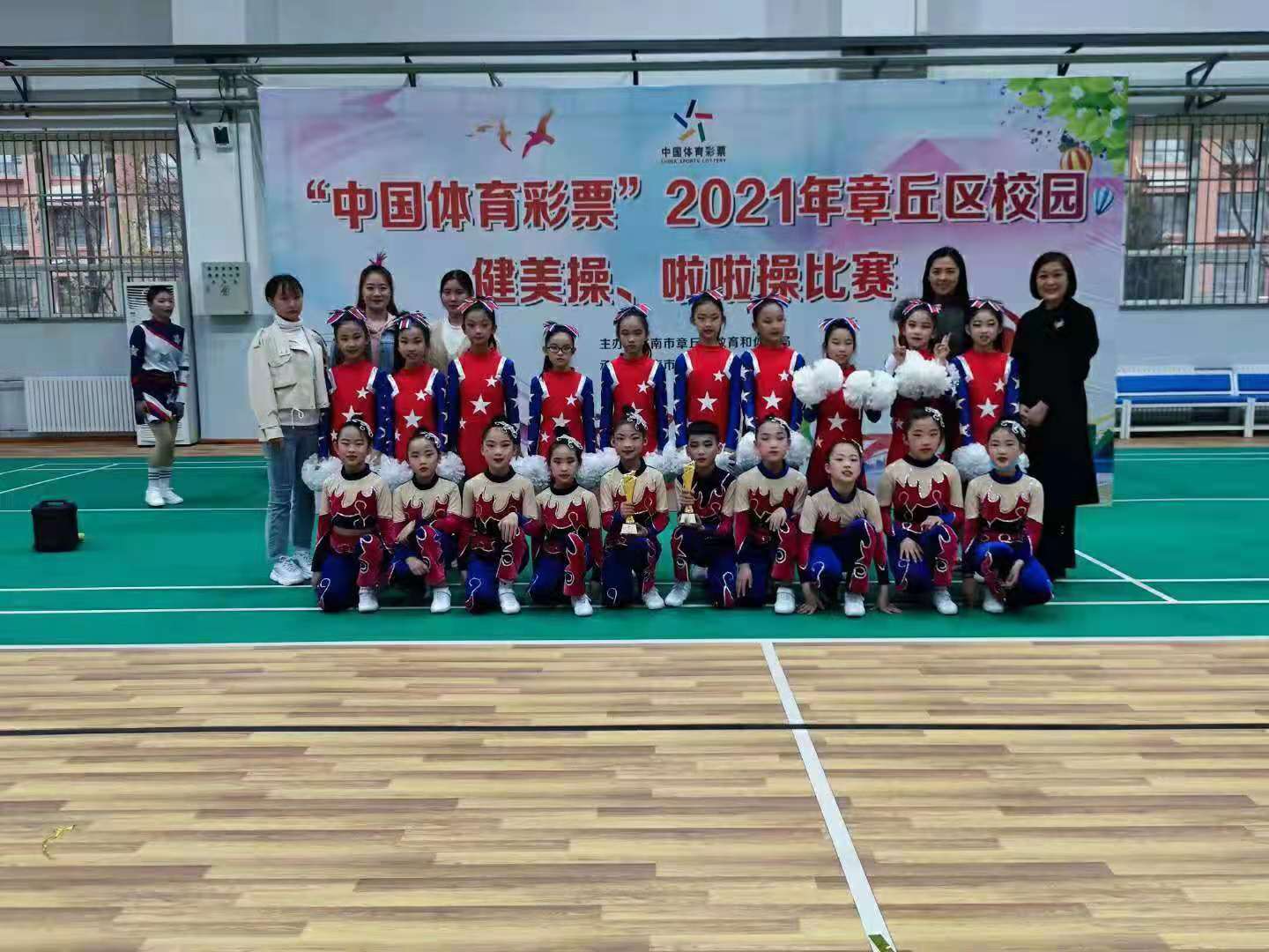 近日,从“2021年章丘区校园健美操、啦啦操比赛”上传来好消息。由体育学院支教实习生蒋璐遥、郭媛洁编排指导的参赛队荣获啦啦操比赛第一名、健美操第3名。开创了鲁能实验小学该项目历史最好成绩,受到校方的高度赞扬。
