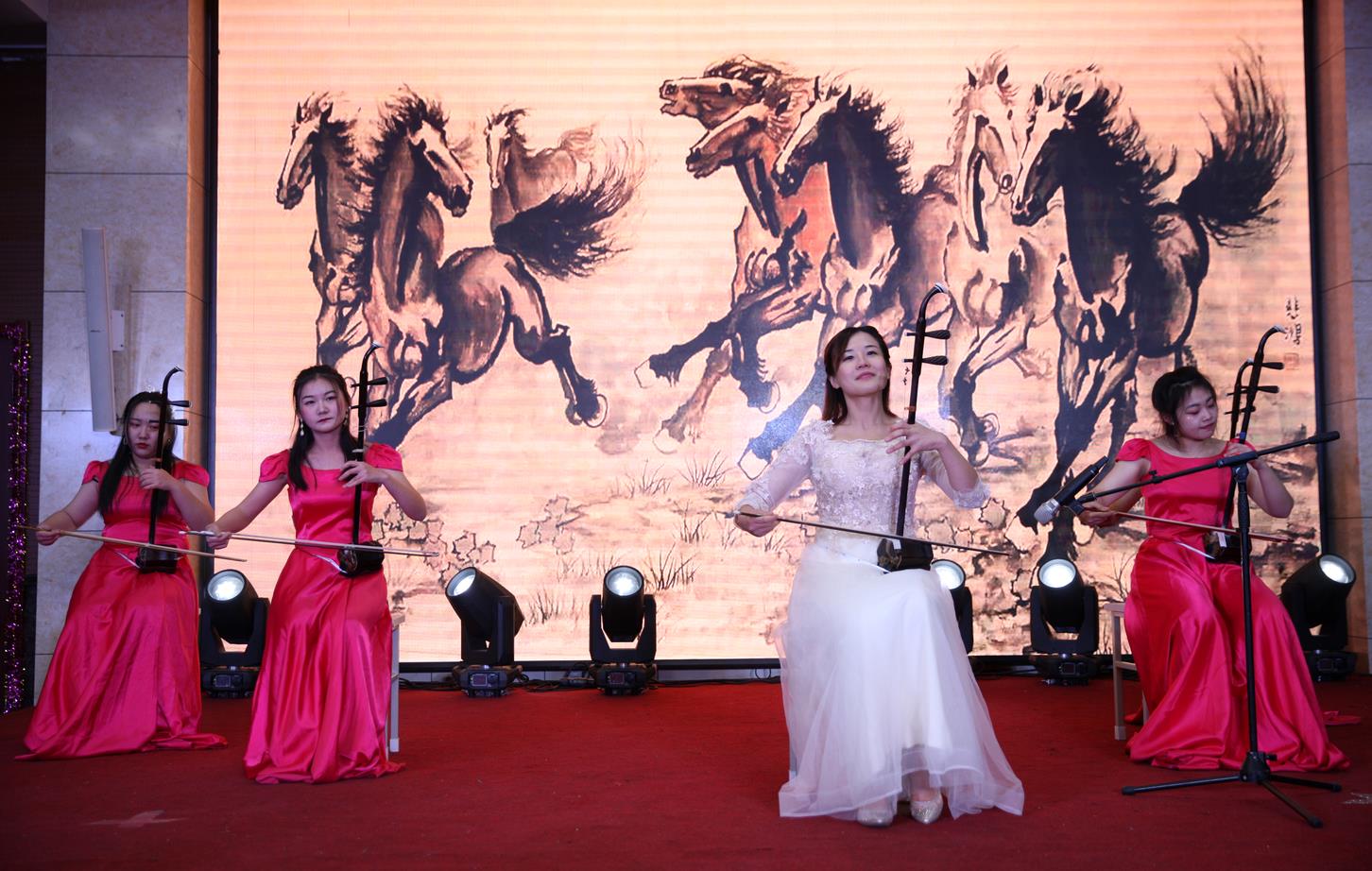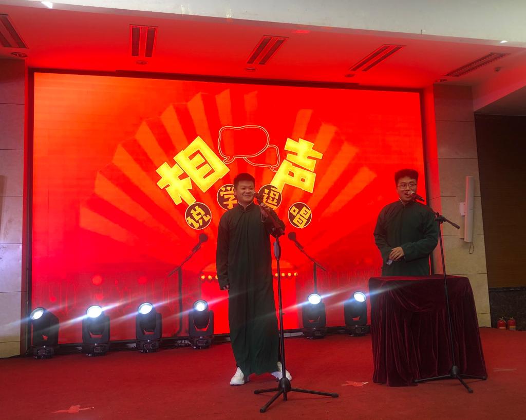 本场晚会共设置10个节目,包括歌曲、舞蹈、相声等多种类型。开场舞《我们都是追梦人》拉开了整场晚会的帷幕,整个作品流行与古典兼收、奔放与内敛共存,形式新颖,精彩绝伦,充分展示了当代青年的精神风貌。朱琳老师带领同学们演奏的二胡齐奏《赛马》以其磅礴的气势、奔放的旋律赢得在场观众掌声不断,由远到近清脆而富有弹性的跳弓,强弱分明的拨弦、颤音,仿佛在我们面前展现了一幅生动热烈的赛马场面。中场互动环节老师与同学们共同参与有趣的抽奖游戏,在欢声笑语中师生拉近了彼此之间的距离。《复古舞蹈串烧》仿佛带我们回到了上世纪九十年代的上海,相声《朋友论》诙谐幽默,妙语连珠,两位同学以他们幽默搞笑的方式展示了大学里浓浓的校友情,表达了对友谊地久天长的期许。愿你此去前程似锦,风景如画,袁野老师带来的歌曲《锦绣前程》激励人心,大气豪迈的展开了一幅美好未来的画卷,将晚会推向高潮。最后,伴随着曲调欢快热烈的《花好月圆》晚会完美落幕。