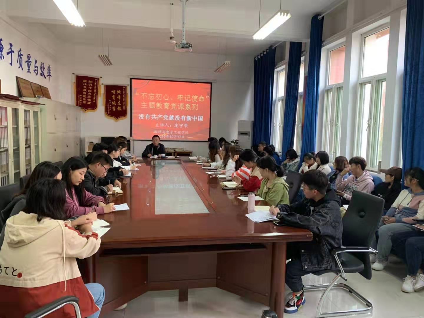 10月17日下午,物理与电子工程学院在实验楼B216开展“不忘初心、牢记使命”主题教育党课系列活动,党总支庞守荣书记做党课系列活动的第一讲。学生党支部全体党员和入党积极分子参加了本次党课。