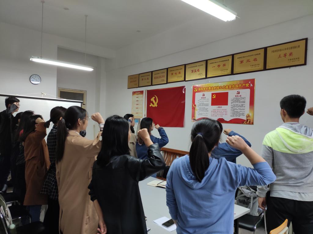 2019年10月10日,数学学院学生党支部召开“四重”主题党日活动。通过观看教育片、重读入党志愿书、重忆入党经历、重温入党初心、重温入党誓词,激励党员坚守信仰、加强党性修养。